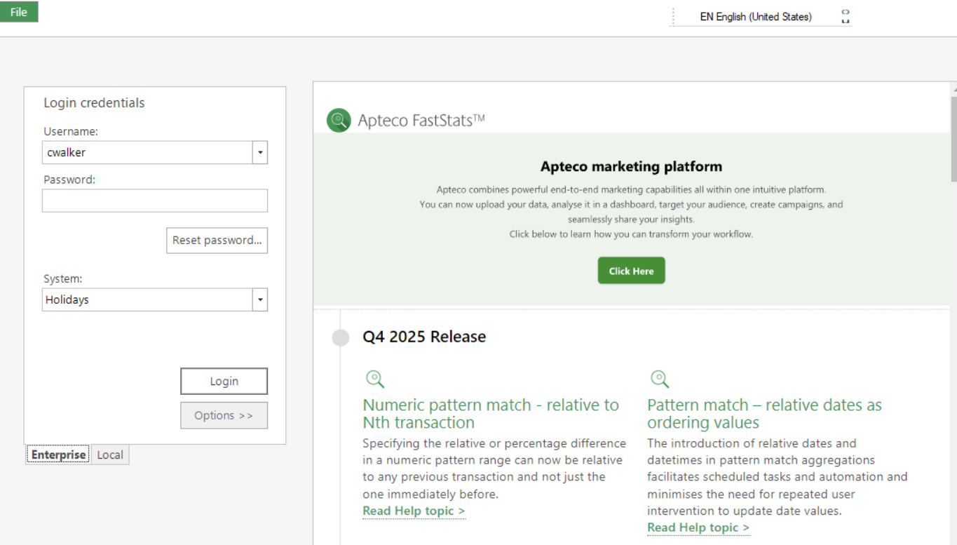 When you run a FastStats Launcher (or FastStats local) then the log in page should show a list of features in the splash page to the right of the log-in panel: